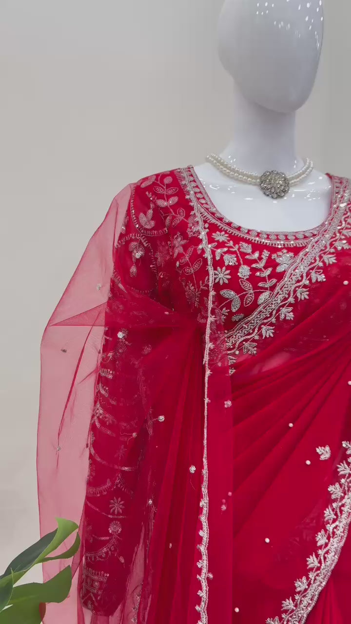 Looking some one for this same colour beautiful Designer Saree on Faux Georgette Febric with Thred & Sequnce and Pearl work and Blouse on also Faux Georgette Febric With Thred & Sequnce work and Dupatta on Soft Net With Thred with Sequnce work.