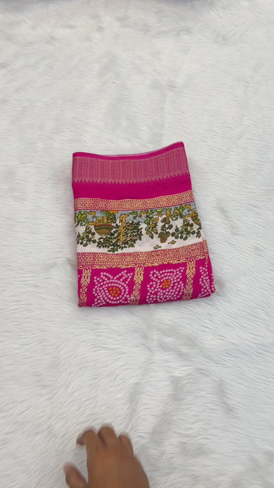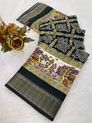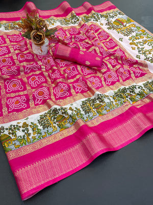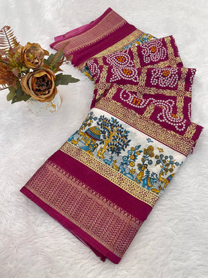 Designer Bandhani Print With Foil Print Women Saree