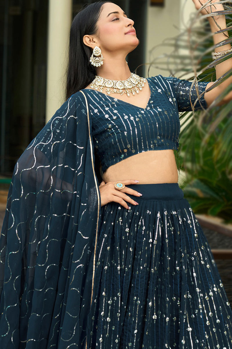 Embllished Semi Stitched Lehenga Choli (Cerulean)
