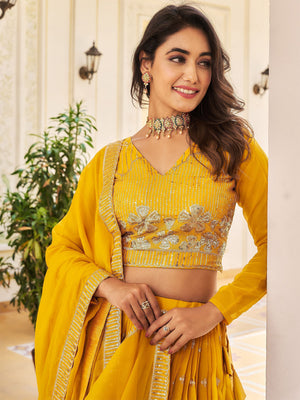 Embllished Semi Stitched Lehenga Choli (Yellow)