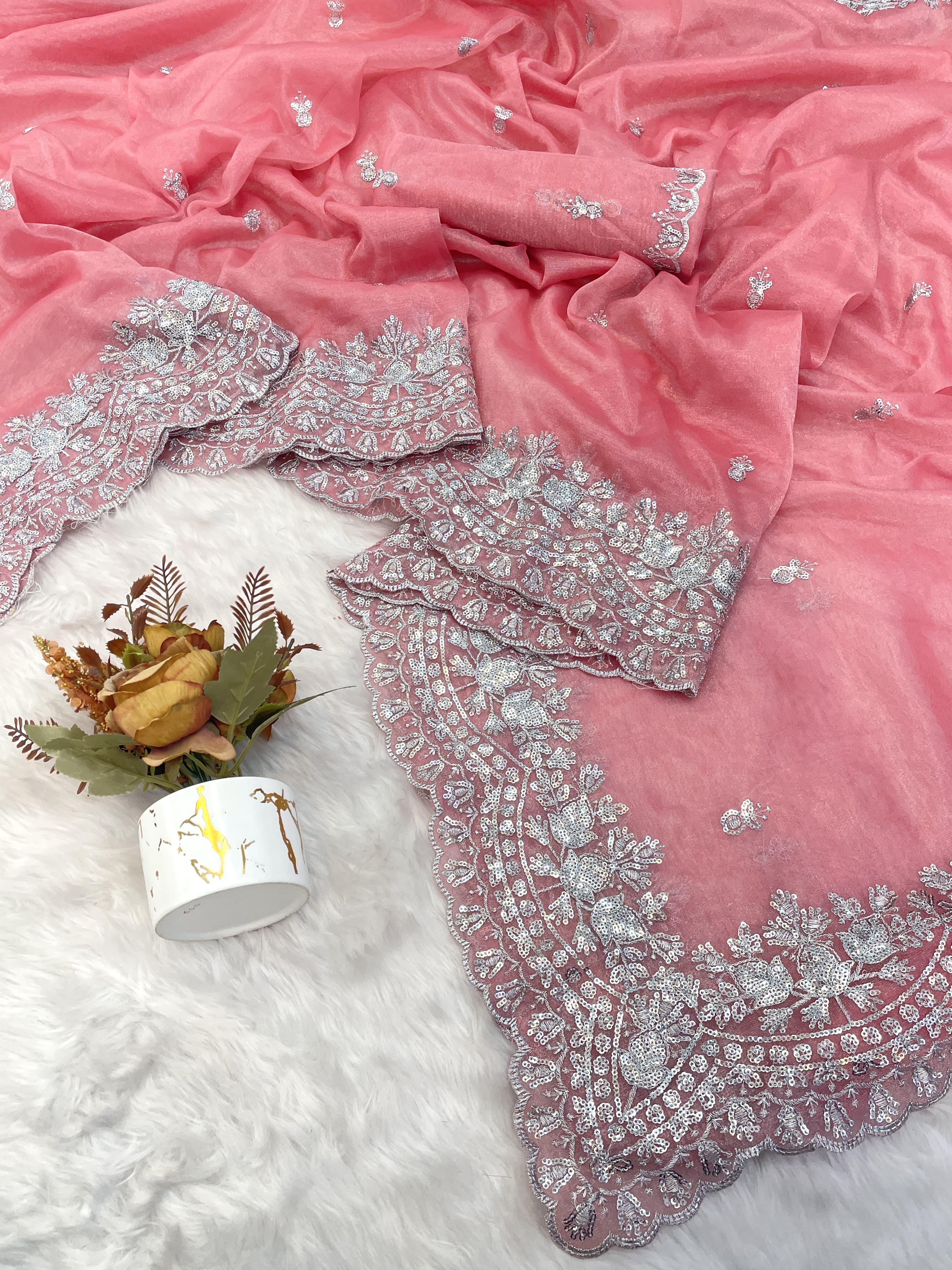 Jimmy Choo soft fabrics with embroidery c pallu work with cut work border
