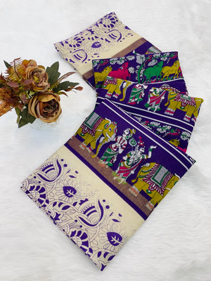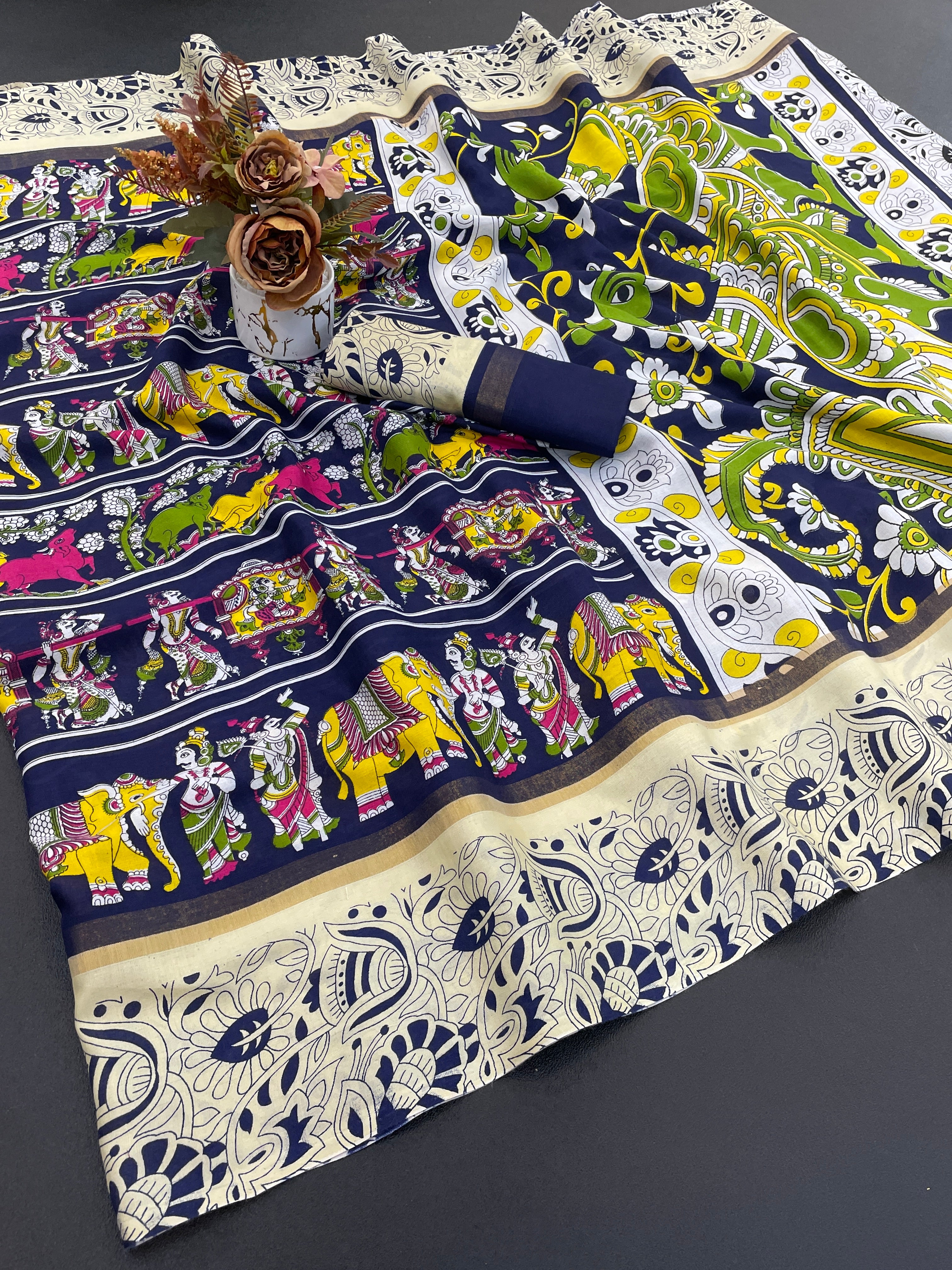 Mull Mull Cotton Banarasi Pattu Designer Print saree