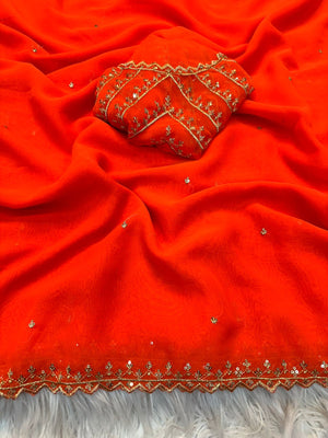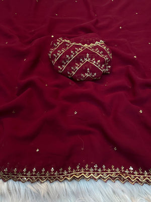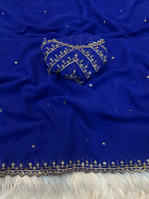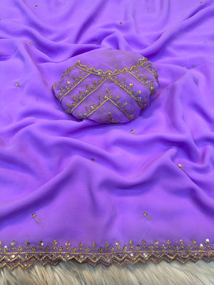 Pure Soft Georgatte Fabric Saree With Heavy Embroidery Work & Fancy Work Blouse