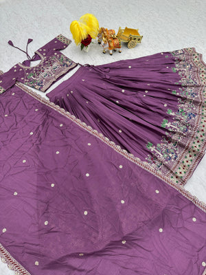 Royal Purple Embroidered Lehenga Set with Mirror Work & Dupatta