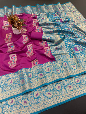 Soft Pethani silk saree with zari weaving design and Meenakari Women Saree