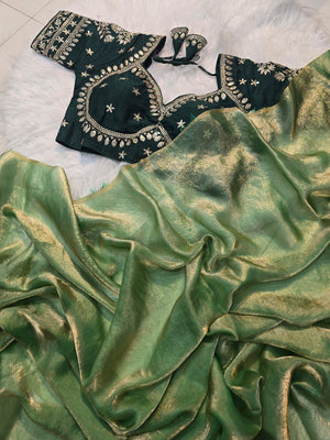 Space Silk Saree With Sequence Emrodairy Full Stiched Worked Blouse