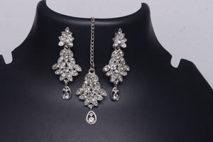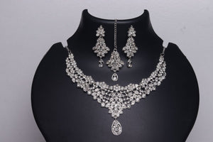 Sparkling Silver-Plated American Diamond Bridal Necklace Set with Earrings and Maang Tikka
