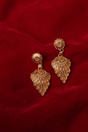 Make a grand ethnic statement with this Traditional Antique Gold-Plated Necklace Set, beautifully designed with intricate floral patterns and detailed filigree work. The set includes a bold designer necklace, matching jhumka-style earrings, and a coordinating maang tikka — perfect for weddings, festive celebrations, or traditional occasions.
