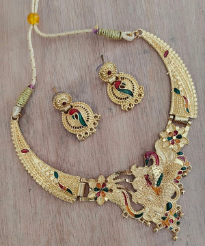 Traditional South Indian Gold-Plated Peacock Design Necklace Set with Matching Earrings – Temple Jewelry Style