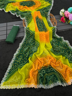 Speciality: Lightweight, Easy to Drape, Vibrant Colors with Traditional Bandhej Look